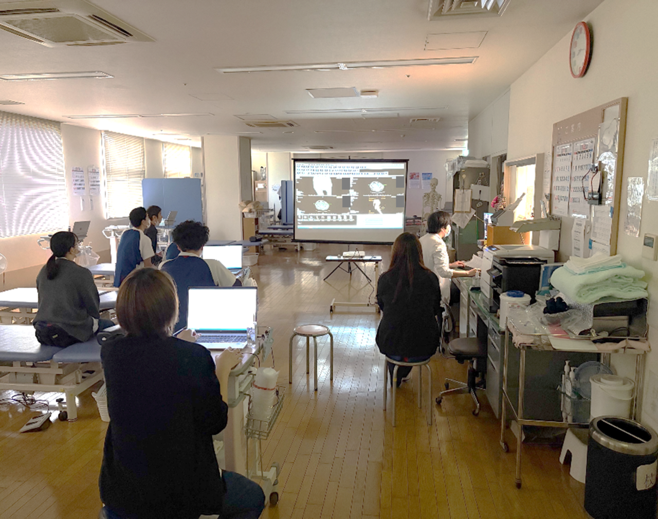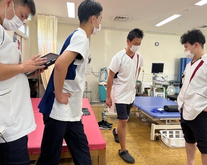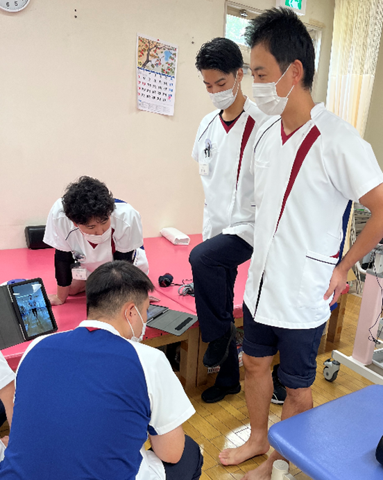 リハビリテーション科内では定期的な勉強会をおこなっています。患者さんを治療するにあたって必要不可欠な触診をはじめ、各疾患の勉強会や、スポーツ動作の分析から運動処方を行うための勉強会など、幅広くおこなっています。