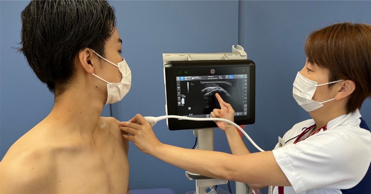 エコーを拘縮(癒着や短縮)など固くなっている部位や、筋肉に当てて動態評価しながらリハビリテーションを実施することで、動作の中で痛い部位や硬くなっている部位を評価し、的確に治療にあたります。